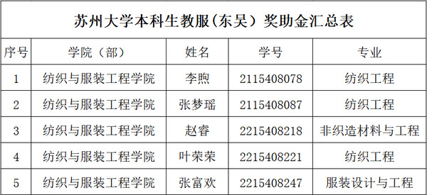 根据《关于做好2023年本科生教服(东吴)奖助金有关工作的通知》(学字〔2023〕25号)等文件精神,我院组织开展了2023年本科生教服(东吴)奖助金评选工作。经学生申报、学院评审,现将拟推荐名单公示如下,公示期为2023年5月29日-6月2日。