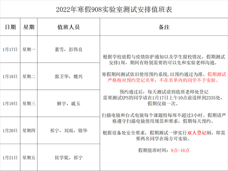 2022年实验室寒假值班安排