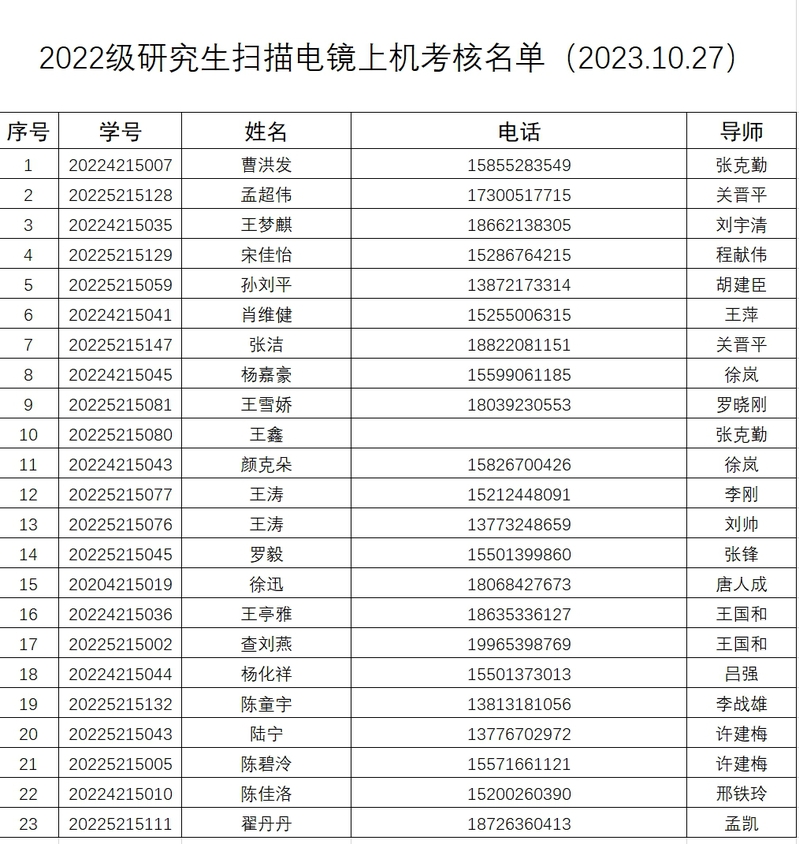 考核报名名单: