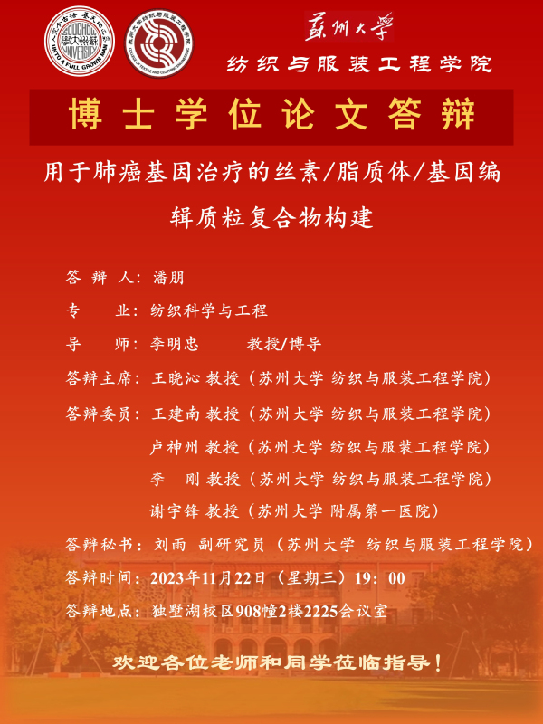 纺织与服装工程学院潘朋博士学位论文答辩公告