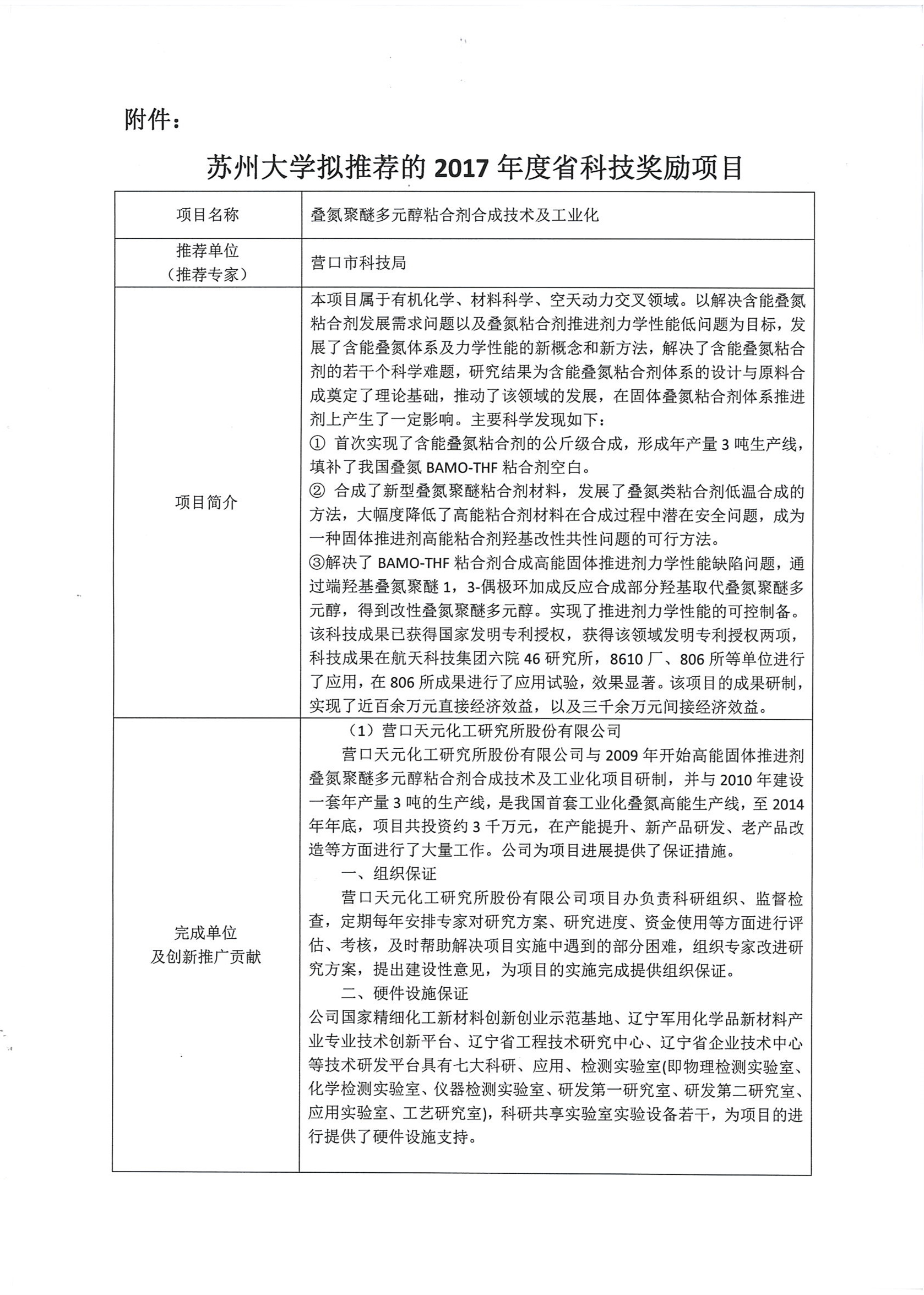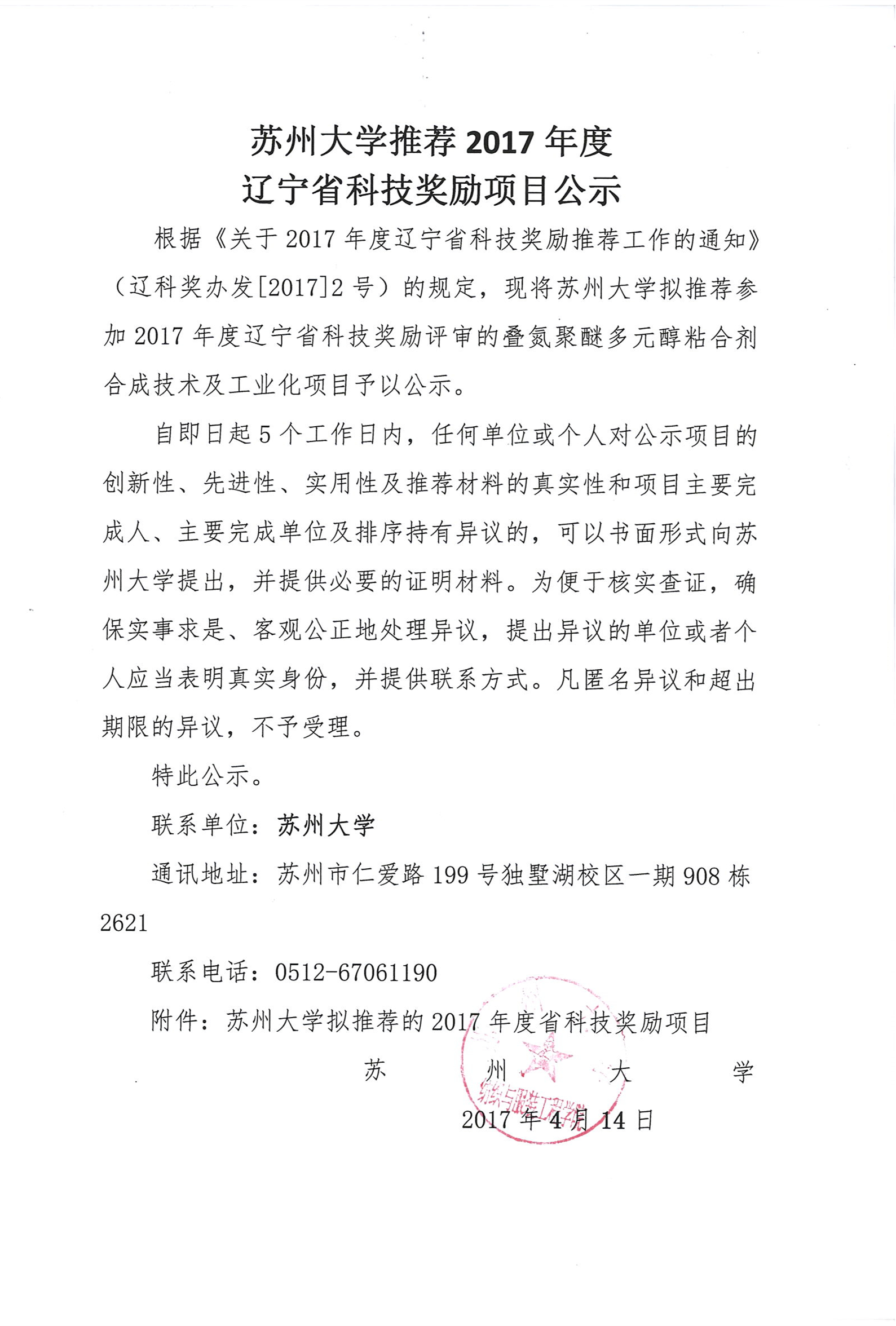 苏州大学推荐2017年度辽宁省科技奖励项目公示