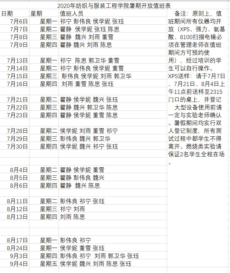 7月5日-17日期间,每周开放4天,每次实验教师4位实验教师参与值班;